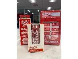 COCA-COLA MINI TUMBLE TOWER GAME: Enjoy a family game night playing this Coca-Cola Tumble Tower game. Set includes 18 wood blocks and instructions on the side of the box. Family game for 2+ players.