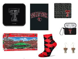 Red Raider fans and gadget geeks will love this bundle! Wirelessly charge your Apple and Android Qi-enabled mobile devices with the Texas Tech Wireless Fast Charging Pad. Officially licensed by the NCAA, it comes with a one-year manufacturer's warranty. Store your AirPods Pro (sold separately - see auction item #24) in Red Raiders style with a custom Texas Tech silicone case. You'll also receive a Texas Tech logo mouse pad and Texas Tech Notebook/Wellness Planner. The 6 x 9" notebook has 114 pages for organizing your daily activities and tracking your wellness goals. You'll also look stylish in a pair of Texas Tech silver-toned dangle earrings with a ¾" logo charm and fishhook backs with rubber stoppers. And when you feel like disconnecting, slip into some fuzzy argyle socks and relax with a puzzle! This pair of cozy socks with a red and black argyle design and embroidered Texas Tech logo are NCAA-licensed and machine washable. Their Technifit fabric made from 97% polyester cloud yarn and 3% spandex offers comfort and moisture-wicking, and the socks are sized to fit men (sizes 5-10) or women (sizes 6-11). The 1000-piece jigsaw puzzle shows a panoramic view of the Texas Tech football stadium and measures 39" wide when complete. It is made in the USA and officially licensed by the NCAA.