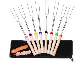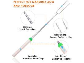 No more fighting over the marshmallows, because everyone gets their own! Perfect for the whole family, the S'mores Roasting Sticks are made from food-grade, heat-resistant stainless steel with wood handles and multi-colored accents. These eight roasting sticks expand from 12" to 32" and are dishwasher safe.