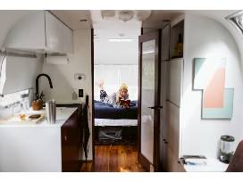 Sleep surrounded by nature, but with every possible comfort. Inside a timeless 31-foot Airstream you'll find a bright and airy sitting room and fully-functional kitchenette. In the bedroom, a queen bed with high thread-count linens is tucked under a panoramic window. A private modern bathroom offers a walk-in rain shower and spacious vanity area. Outside, relax with a glass of wine on your private patio, which includes a firepit and dining area.
