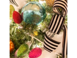 We're stepping into the New Year in style with this fashionable and festive dapper tree design. With a joyful color palette, fluffy snow, and handsome striped ribbon, this tree is sure to make a fun and fresh fashion statement on your holiday decor!