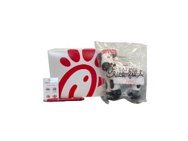 50 cards for a variety of Chick-fil-A meals. Includes stuffed Chick-fil-A mascot cow and pen.
