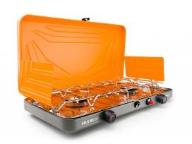 The award-winning 540 Selkirk features twin 10,000 BTU/h burners with precise, individual control valves for everything from simmering to speedy boiling and room for two 8" or 10" pots or two Bugaboo 10" Square Frypans side by side. side-by-side. A simple push-button ignition system eliminates frustration and the built-in carrying handle is designed for both easy transport and singe-free lighting.