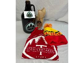 Trailbreaker cider package with growler to fill, gift card and brand wear shirt.