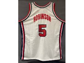 Autographed David Robinson Olympic jersey with certificate of authenticity. White jersey with red lettering. NBA Authentic Jersey-Team USA Mens