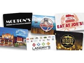 Gift card for $25 from Landry's. Can be used at any of the following restaurants: Landry's Seafood house, Saltgrass Steak House, Chart House, Bubba Gumps, McCormick & Schmicks, Rainforest Cafe, Mastro's Restaurants, Claim Jumper, Morton's The Steakhouse.