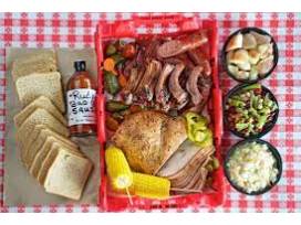 Your complimentary Group Meal for 25 people includes: 4 lb Brisket, 4 Lb Turkey, 6 Sausage Links, 1 gal cream corn, 1 gal beans, 1 gal potato salad, 3 gallons of tea & ice & all the fixin's!