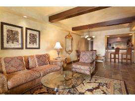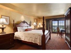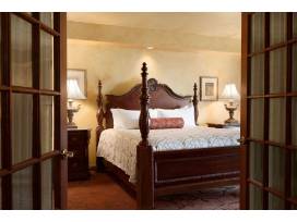 This luxurious suite features spacious living and sleeping areas. French doors open to an elegant, airy bedroom featuring a hand-carved, four-poster king bed and its own HDTV with CD/DVD player. A spa-like bathroom comes with a 2-person jacuzzi tub and separate shower with computerized waterfall shower head. The suite's parlor area includes a full-size refrigerator, wet bar, microwave, ice maker, dining room table and seating area. The parlor is perfect for entertaining a small gathering of people.