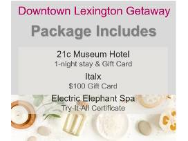 - 21c Museum Hotel - one night stay in corner king, including $100 gift card to Lockbox restaurant.