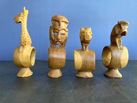 This 4 piece wooden hand carved whimsical napkin ring set from Ethiopia will be a fun way to set your table for a gathering of world travelers or those who dream of such travels.