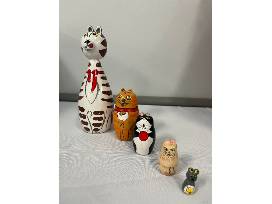 Spaying and neutering would certainly prevent cats from having more cats and dogs from having any more dogs! In the meantime, you can support our spay-neuter efforts by bidding on these darling wooden nesting dolls - 1 cat and 1 dog, both include 4 nesters inside.
