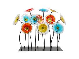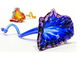 A basic flower comes with up to two colors and a straight stem or a curly stem. All objects made in the hot shop are one of a kind and will vary in size and appearance. The average size of a basic flower is approximately 15"x7"x7" All students must be at least 10 years old to make the basic flower.