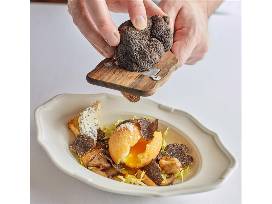 Enjoy a five-course tasting menu featuring black truffles prepared by Chef de Cuisine Steven O'Neil, plus wine pairings for four people, seated at the chef's table.