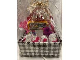 A unicorn lover will be thrilled to receive this set including stickers, coloring book, jewelry-making kit, art projects, drinking glasses, makeup kit, and other treats.