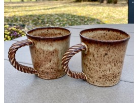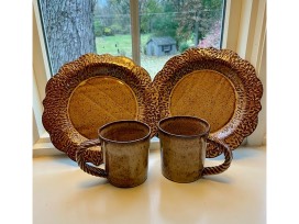 Own this gorgeous set of dining pottery that includes 2 mugs and 2 plates made by Kathy McCoy of Beloit, Wisconsin, and sold at markets under the name Fenwick & Maple in Nashville, TN, area. @fenwick_and_maple