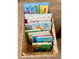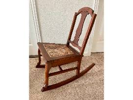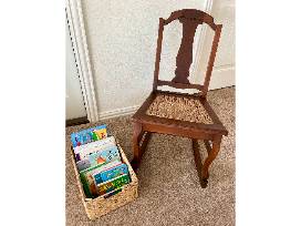 Foster your little one's love for reading with this adorable antique rocking chair and collection of board books! The rocker is perfect for toddlers and up and features a beautiful cane seat and walnut stain finish and woud look adorable in any reading nook or kid's room!