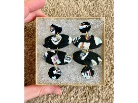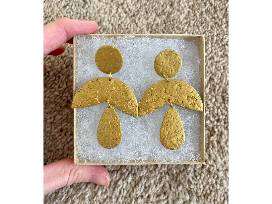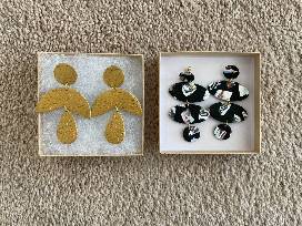 Edith & Annelle is a Christian, female-owned business that makes home-made jewelry out of clay and gold-plated, nickle free hardware! This set of two moody earrings includes a gold set and a black set with flecks of lots of colors! They are equally unique and beautiful and sure to make a statement!
