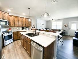 Get away from the hustle and bustle of the city and take in God's creation at this beautiful home on a private 30-acre lake within Bear Mountain Ranch. Located in Wilburton, OK, this 5 bedroom, 5 bath lake front house sits on beautiful property where you can kayak (with provided kayaks), catch and release fish, spot wildlife, and gaze at the starry nights. Sleeps up to 18 people but no pets allowed. Book any available weekend in 2022 or 2023! Three night stay with additional nights available to be added at a discounted rate.