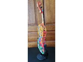 1This full-size (4/4) violin, custom-painted by hand with acrylic paint by Julie Borden (www.juleez.com), features scenes inspired by Lewis Carroll's book "Alice's Adventures in Wonderland". Painted on front, back, and sides, it includes a black nylon case and black metal violin stand with side cushions (bow and chinrest not included). This violin was purchased as a piece of artwork and has never been tuned or played. This unique and breathtaking work of art would make a wonderful addition to any musical collection!