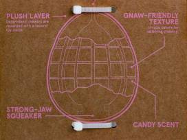 - Beaster Egg - plush layer on the outside with natural rubber core, strong-jaw squeaker, and a sweet candy scent