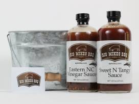 Can't get enough? Continue the BBQ fun at home with a bottle each of Big Mikes Eastern NC Vinegar Sauce and Sweet N Tangy Sauce.