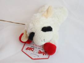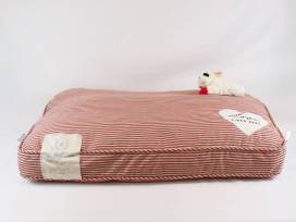 Your older pup will love to rest on this 28"x40"x4" orthopedic dog bed by The Prairie. It's red and white striped with a heart-shaped "Love Lives Here" patch; comes with a Lamb Chop dog toy.