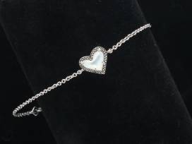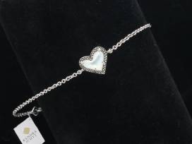 Delicate Kendra Scott silver heart bracelet with opalescent stone