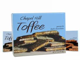Tasty local toffee from Chapel Hill Toffee! Three 10-ounce boxes plus another two 5-ounce boxes. Great for yourself or for holiday gift giving!