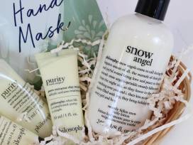 Indulge in a little self care with this Philosophy Purity beauty set, along with hand mask and body lotion: