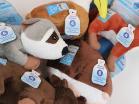 These toys from Spunky Pup are from the Clean Earth Collection; they remove water bottles from the ocean with every product sold. Toys are made with recycled bottles and can be recycled after use!