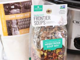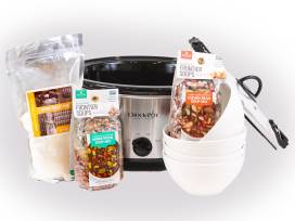 Sparkling new Crock Pot filled with two "just add water" soup mixes, plus a cornbread mix from Great Harvest Bread Co. Includes 4 country charm ceramic bowls from which to enjoy your Crock Pot creations!