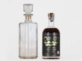 Raleigh-distilled Amaretto from Oak City Amaretto, a veteran-owned company! Included with this 750 mL bottle is one vintage glass decanter.