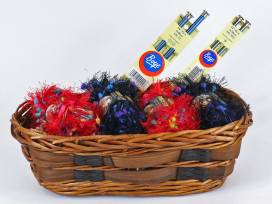 - Four packs of Fancy Fur yarn (two rainbow red and two stained glass black)