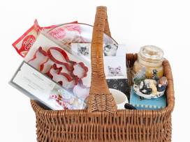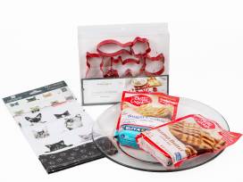 Cat-themed cookie cutters, Meow mug, cat candle capper, cat dish towels, buttercream Yankee Candle, and some yummy cookie mixes!