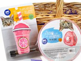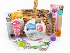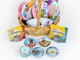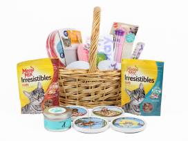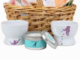 The basket for the dental hygiene-focused cat! Treats and chew toys to help maintain healthy teeth, plus catnip toy, candle, set of 4 coasters, pop-up play tent, and feeding dishes to reward Mr. Whiskers for keeping those teeth nice and clean!