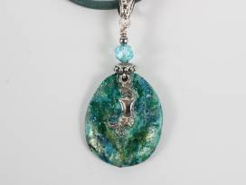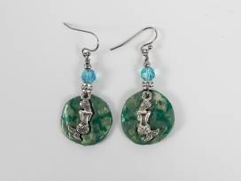 Aqua mermaid earrings and necklace set with 24-inch leather cord, light-weight polymer with a pearlized paint finish and Swarovski crystal beads.