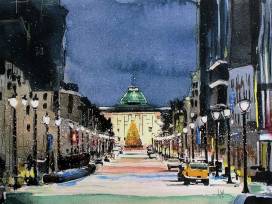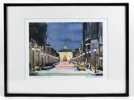 Lew Wilson perfectly captures Raleigh during Christmastime with this print of his "Snowy Raleigh" painting. 10 x 8 inch picture in an 11 x 14 inch frame.
