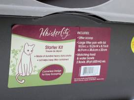 - Whisker City Starter Kit - comes with litter scoop, large litter pan with lid (18.5" x 15.2" x 8.7"), and matching food and water bowls (420 ml each)