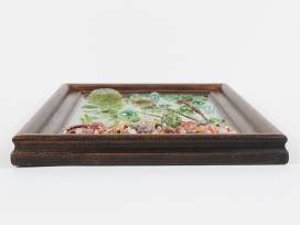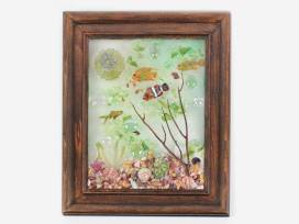 Framed clown fish ocean scene resin art with chain for hanging or a plastic display easel for standing.