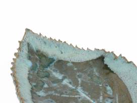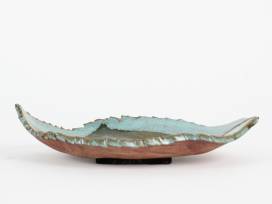 Use this beautiful glazed clay leaf as a trinket tray or a spoon rest. 9x5 inches.