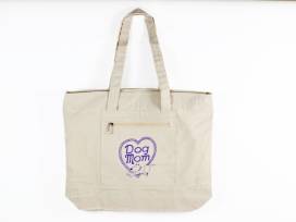 0Carry all your daily personal and pet needs with the cute Dog Mom tote bag. Includes zippered pouch on the front.