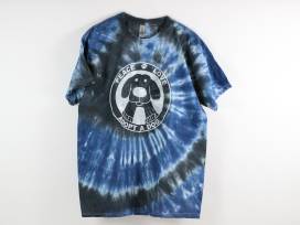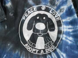 0Enjoy this stylish and comfy blue and black tie dye cotton t-shirt that has Peace Love Adopt a Dog on the front.