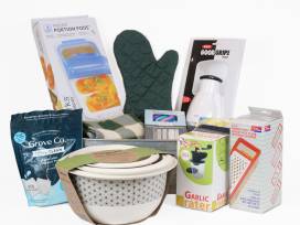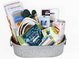 Stock up your kitchen or snag this easy housewarming gift with this basket of kitchen gadgets, which seems to come with nearly everything but the kitchen sink!