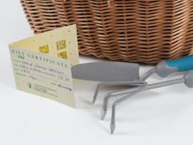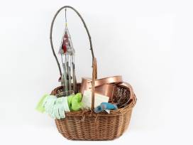 Spend all day in the garden with your new copper watering can, garden tool set, glass plant pot set, gardening gloves, and $50 gift card (expires 8/22/23) to Campbell Road Nursery in Raleigh. Finish the vibe with the beautiful red glass and metal wind chime with cat design.