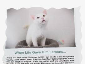 If you're a Tom Collins lover, you'll love this bundle that comes with the ingredients for a Tom Collins cocktail! And if you're a lover of our adoptable kitty Tom Collins, you'll love it even more, as his rescue story is included!