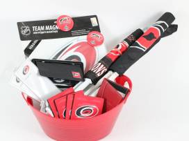 - Also included is Hurricanes merchandise: Leather checkbook, 4-pack of coasters, 2 magnetic notepads, small red leather notepad and pen set, 3 car flags, and 1 large Hurricanes logo vinyl magnet