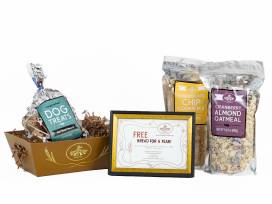 You and your pup can both enjoy goodies from the Great Harvest Bread Co. with this delectable basket: