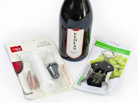 Package comes with a $50 gift certificate to Donavan's Dish to use in their online shop, a bottle of Elouan Oregon Pinot Noir, as well as a wine opener and wine saver.