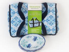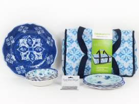Enjoy your meal al fresco with this blue and white melamine dining set, including:
