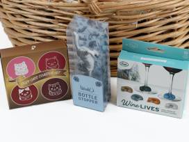 - Set of six curled cat wine charms so you don't lose track of which glass is yours while at a party